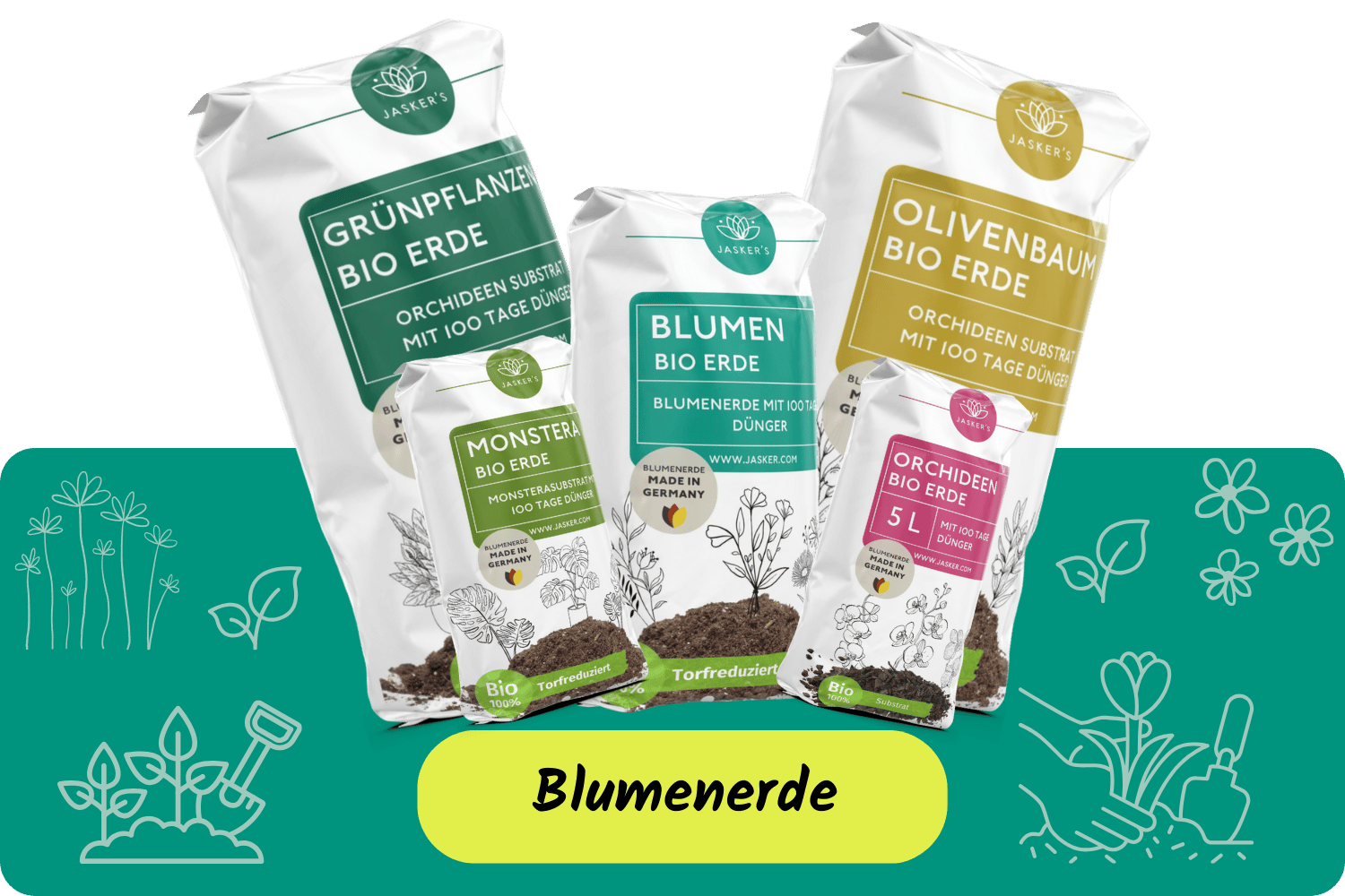 JASKER'S beliebte Blumenerde & Dünger - Unsere Eigenmarke