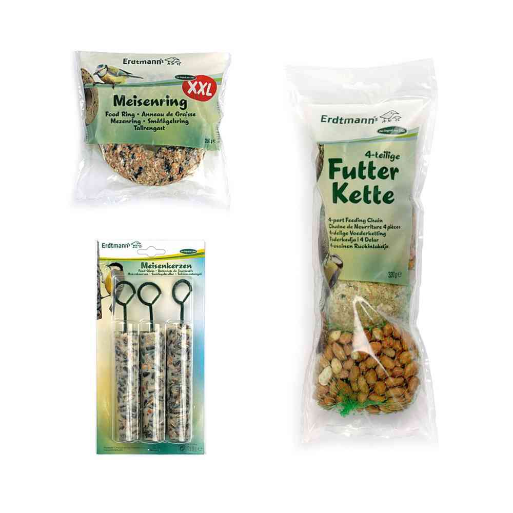 Hier findest Du Wildvogelfutter, Waldvogelfutter, Meisenknödel, Sonnenblumenkeren und vieles mehr.